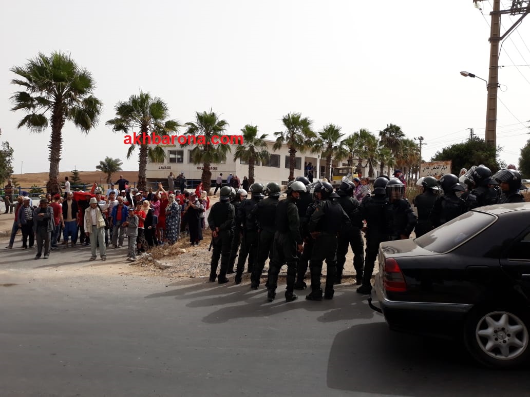 وفي نفس السياق، ردد المحتجون مجموعة من الشعارات مطالبين بتدخل ملكي من أجل إنصافهم، وتوقيف عملية تحفيظ الأرض ( الحي الصناعي)، وعبروا في شعاراتهم المرفوعة عن غضبهم وتمسكهم بملكيتهم لأراضيهم مع استعدادهم للموت من أجلها، على حد تعبيرهم.