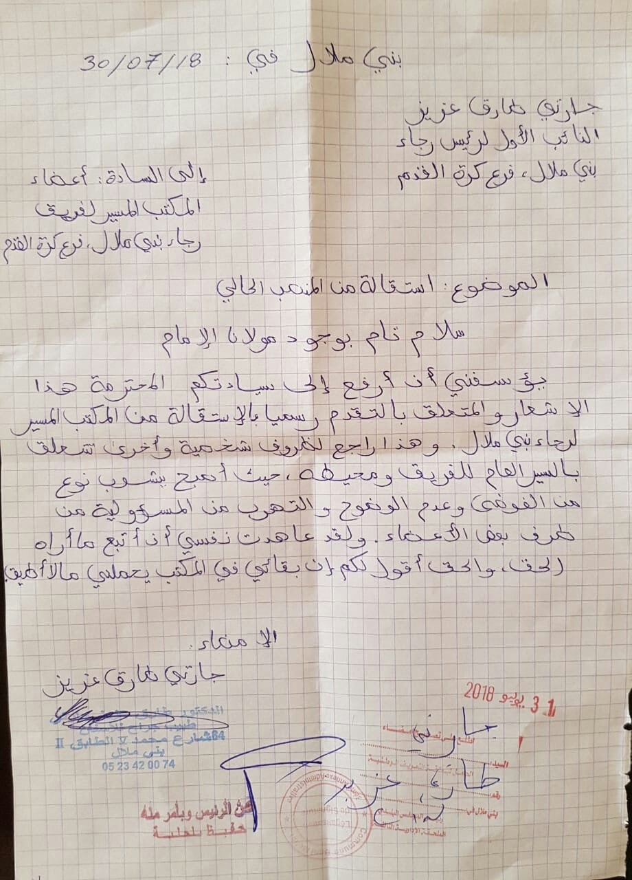 "عدنا غيرة على لبلاد وضحينا مع الفرقة لكن كاينة فوضى وعدم الوضوح فالتسيير ومكاينش معامن " ، يصرح نائب الرئيس المستقيل.