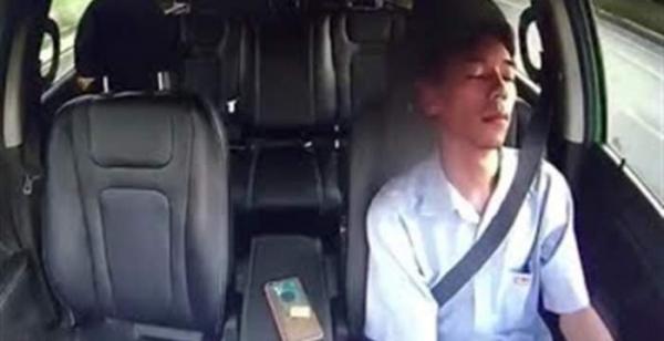 وأظهرت اللقطات السائق النائم وهو يجلس أمام عجلة القيادة، لكنه يستيقظ بعد دقيقة بعدما اصطدم بحاجز على الطريق.