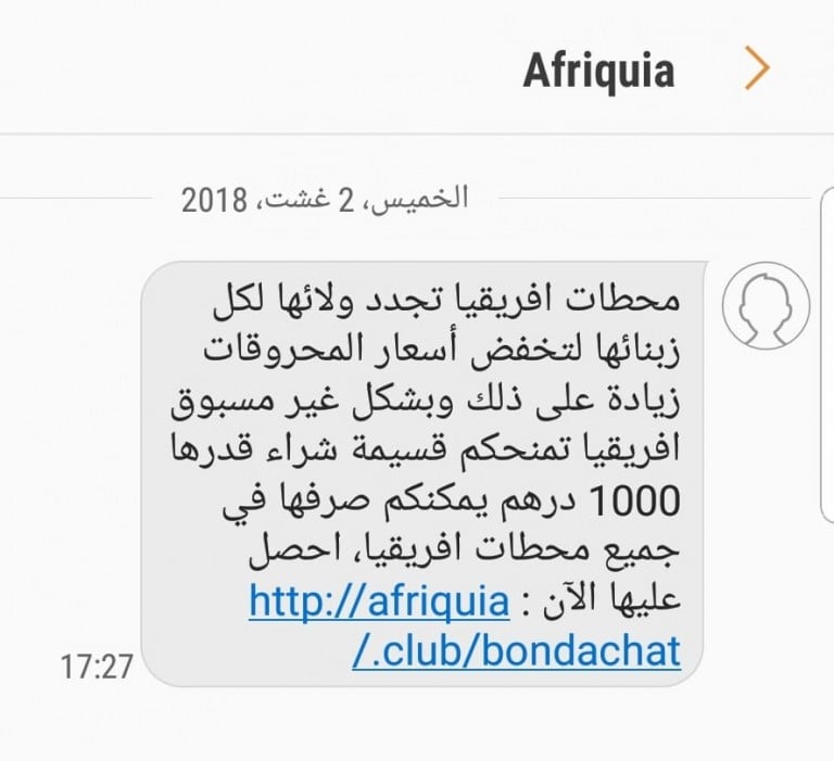 وفي هذا الصدد، قامت الشركة المملوكة لعزيز أخنوش، بارسال رسائل نصية لعدد من المواطنين، تبلغهم فيها بتخفيض الأسعار وتهديهم قسيمة شراء قدرها 1000 درهم.