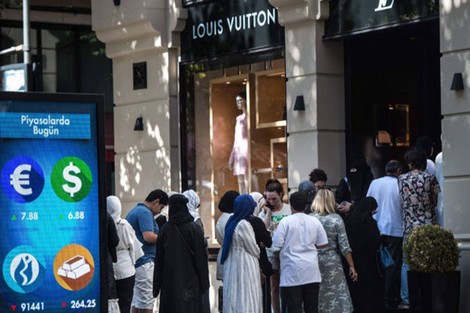 واصطف زوار معظمهم من العرب في صفوف لا تكاد تتحرك أمام متاجر شانيل ولوي فيتون في نيشانتاشي، وهو أحد الأحياء الراقية في اسطنبول، لاستغلال هبوط الليرة التي فقدت 18 بالمئة من قيمتها يوم الجمعة فحسب.