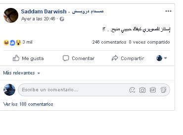 وكتب درويش في تدوينة فايسبوكية باللهجة اللبنانية التي يستعملها في الايقاع بضحاياه من الفنانين "إستاز الصويري كيفك حبيبي منيح. . ؟!".