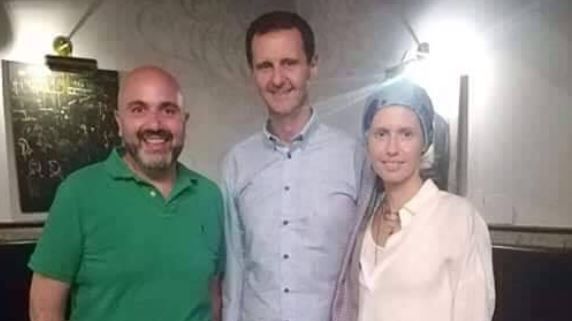 وظهرت أسماء الأسد رفقة زوجها وأبنائها في أحد مطاعم دمشق القديمة، واضعة غطاء للرأس “منديل” على رأسها.