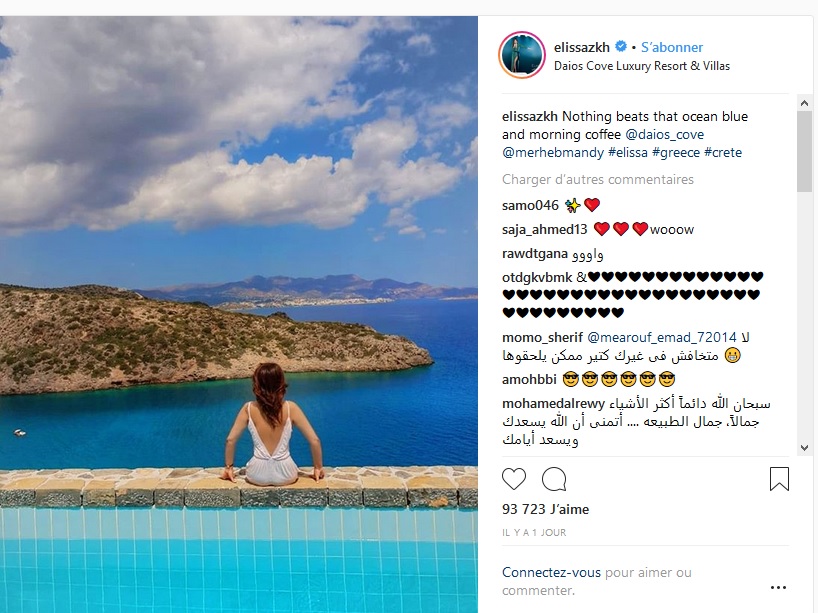 شاركت الفنانة اللبنانية إليسا، جمهورها بصور لها خلال قضائها إجازتها الصيفية، في جزيرة "كريت" باليونان.