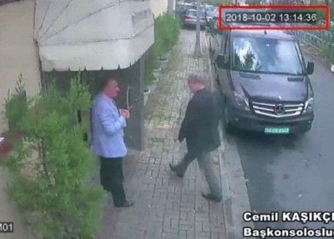 وحسب الصورة المنشورة التي التقطتها كاميرا خارج المبنى، فقد هم خاشقجي — الذي كان يرتدي بدلة سواء — بالدخول لمبنى القنصلية السعودية عند الساعة الواحدة ظهرا و14 دقيقة، فيما شخص واقفا أمام الباب لم تحدد هويته، وذلك وفقا لصحيفة "واشنطن بوست" الأمريكية.