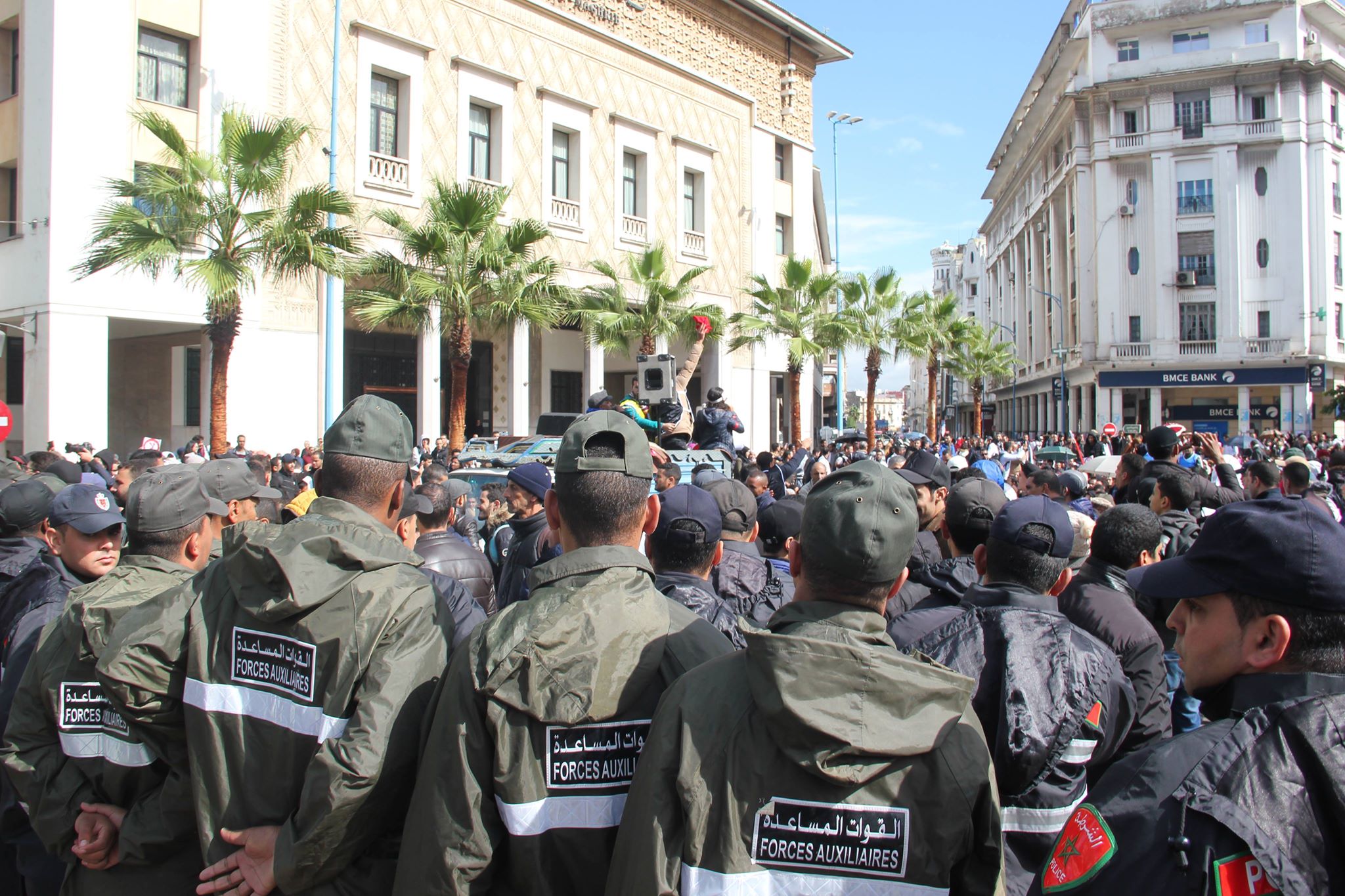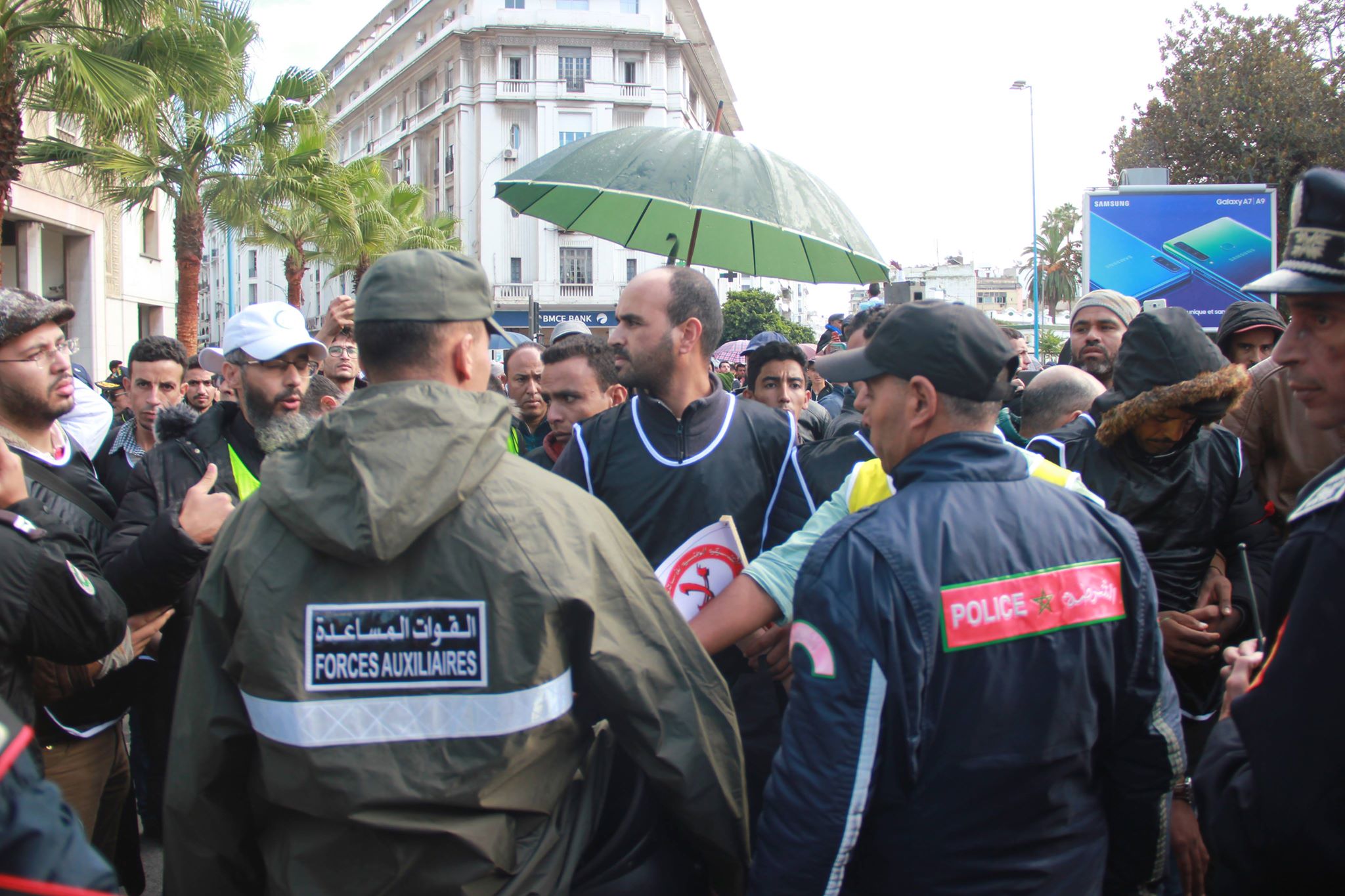 و انتشرت قوى الامن بأعداد كبيرة من أجل محاصرة المسيرة ومنعها من اكمال المسار المقرر لها من قبل المنظمين نحو مركز الدار البيضاء.