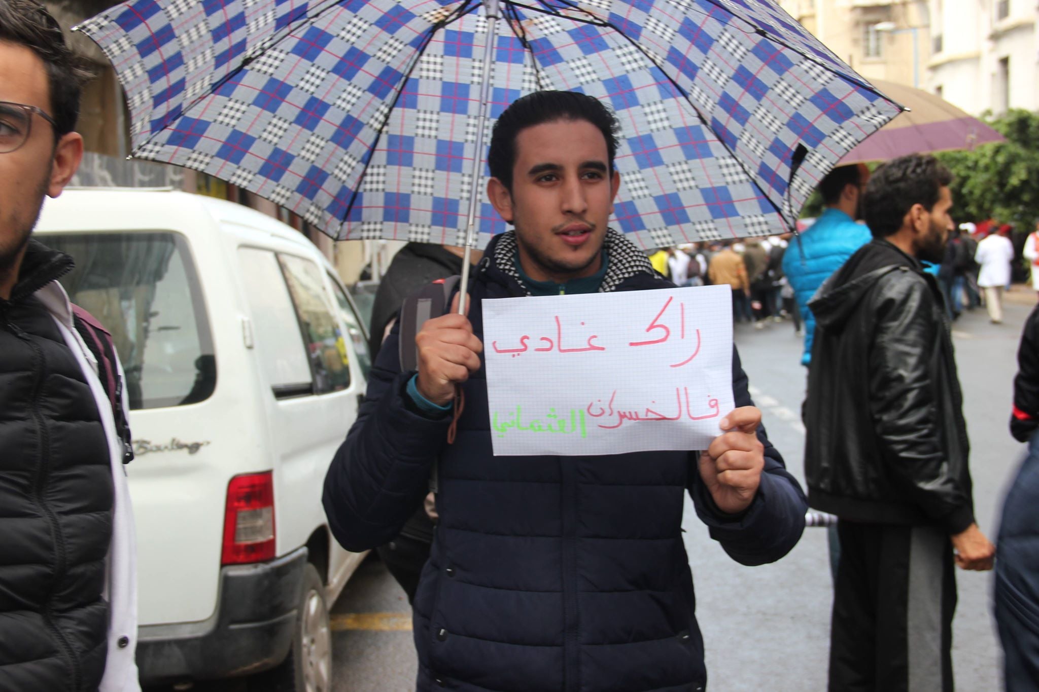 و ردد المحتجون خلال هذه المسيرة التي شارك فيها أكثر من 35 ألف أستاذ وفق جهات تنظيمية ، شعارات من قبيل "حرية كرامة عدالة اجتماعية" و"الشعب يريد إسقاط التعاقد"، و"ناضل يا أستاذ، ضد التعاقد".
