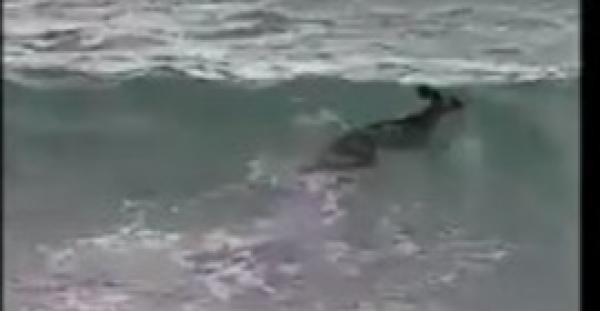 وكشفت أن إحدى السكان رصدت الكنغر يقفز على الطريق المؤدي للشاطئ، حيث بدأت تسجل لقطات له عندما بدأ يسبح في المياه، لكن الأمواج سحبته وكادت تودي بحياته.