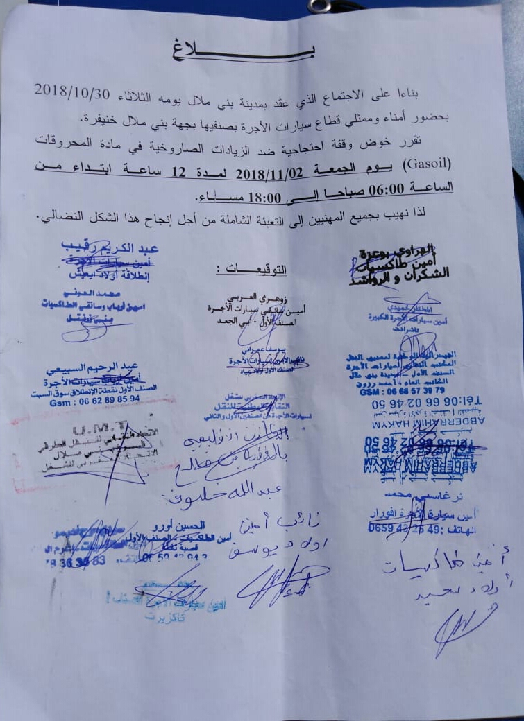 وقالت التنسيقية في بلاغ لها توصلت به "أخبارنا" ان سبب خوضها للاضراب يعود الى الارتفاع الصاروخي لأسعار المحروقات، والزيادات الغير معقولة والتي تثقل كاهلهم وتضرب قدرتهم الشرائية ، وتعمق معاناتهم.