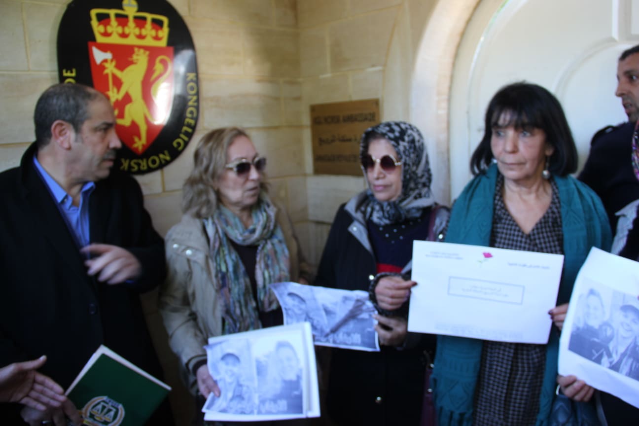 ونظمت الوقفة الاولى أمام سفارة دولة الدانمارك ، وسط تنديد ورفض للجريمة من قبل ممثلي العديد من الهيئات والمنظمات الحقوقية ، فيما شارك آخرون في وقفة ثانية ، أمام سفارة النرويج ، ورفع المشاركون خلالها صورتي الضحيتين، ولافتات تستنكر هذا الفعل الاجرامي.