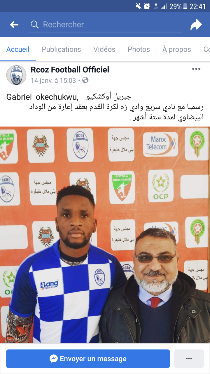 و سبق في بحر الاسبوع الماضي ان عقد نادي الوداد البيضاوي في شخص رئيس الفريق اتفاق ثلاثي مبدئي مع نادي سريع وادي زم لاعارة اللاعب الافريقي "جبريل اوكشيكيو" لمدة ستة اشهر اعطى خلالها سعيد الناصيري موافقته والضوء الاخضر للاعب للتفاوض مع دارة نادي سريع وادي زم حيث توصل الاطراف الى اتفاق اخير اجرى بموجبه اللاعب "اوكشيكيو" الاختبارات التقنية والفحوصات الطبية كما قام نادي سريع وادي زم بتقديم اللاعب رسميا لوسائل الإعلام و صفحته الرسمية بالفايسبوك.