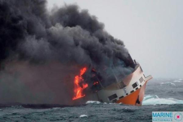 ويعتقد أن الحريق شب على ظهر السفينة المحمل بالسيارات قبل أن يمتد إلى حاوية لكن دون معرفة السبب، بحسب لوزييه.