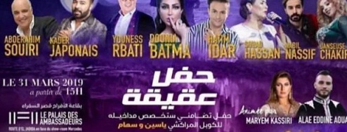الحفل الكبير سيشارك فيه كل من دنيا باطمة و عبد الرحيم الصويري وحجيب وحاتم ايدار وقادر جابوني ويونس رباطي وسعاد حسن وغيرهم من النجوم.