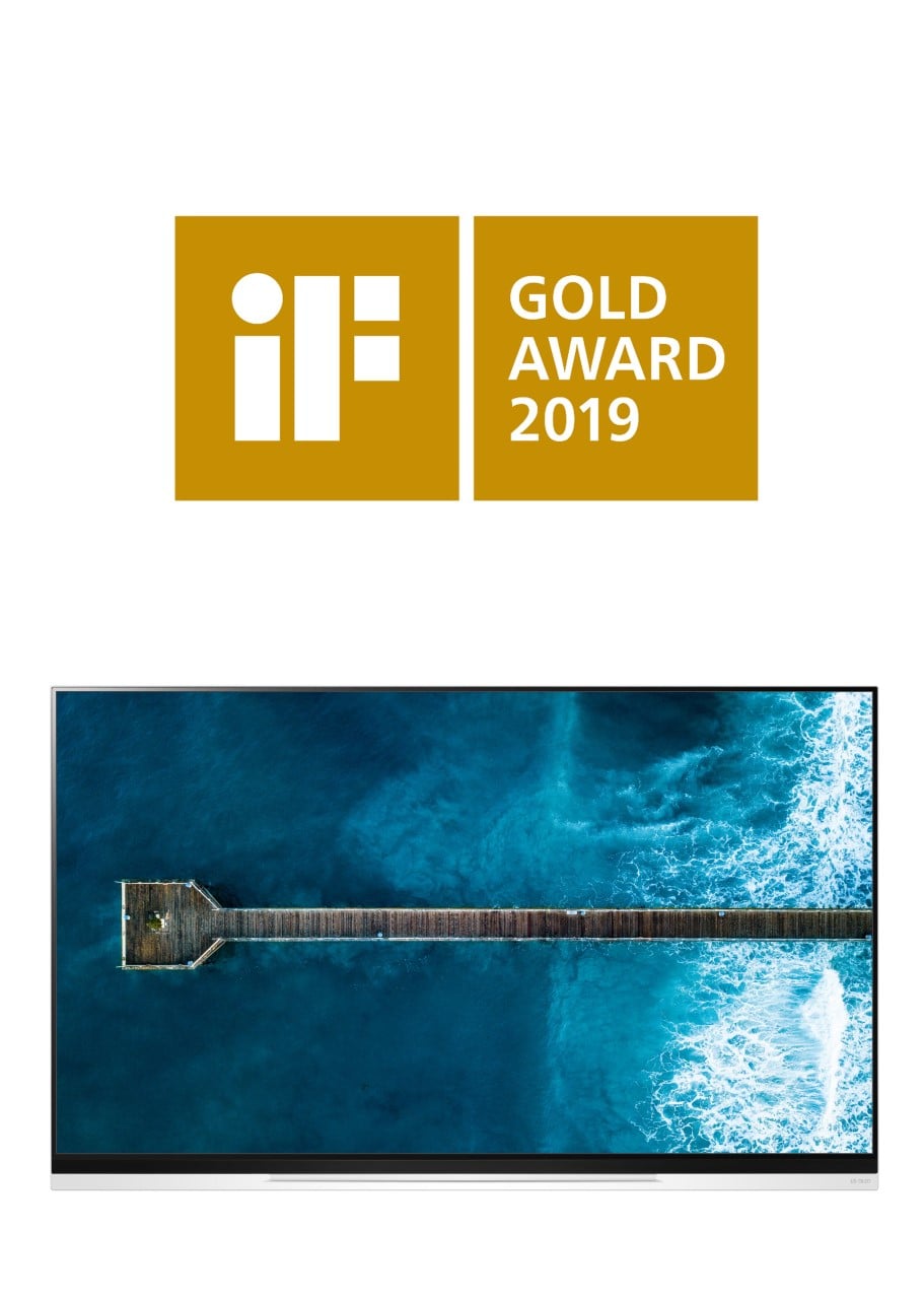 فاز تلفزيون أوليد من LG (طراز E9) بجائزة آي اف الذهبية المرموقة بفضل تصميمه المتميز. حيث أن استخدام الزجاج الشفاف مع وجود الداعم المدمج خلف الشاشة خلق تجربة مشاهدة غامرة. ووفقًا للجنة تحكيم آي اف ، فإن إل جي صممت جهاز تلفزيون بدا وكأن شاشته "تطفو في الهواء"، وهو الهدف الأسمى لأي مصمم تلفزيوني.
