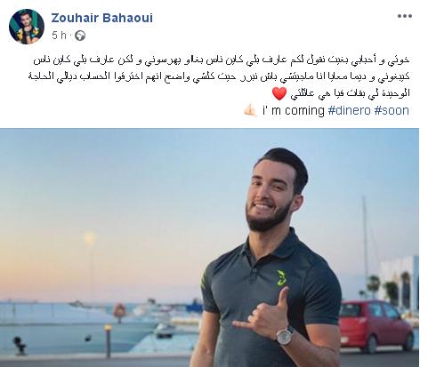 وقال بهاوي في تدوينة عبر صفحته الرسمية بالفايسبوك مساء الأحد "خوتي و أحبابي بغيت نقول لكم عارف بلي كاين ناس بغااو يهرسوني و لكن عارف بلي كاين ناس كيبغوني و ديما معايا".