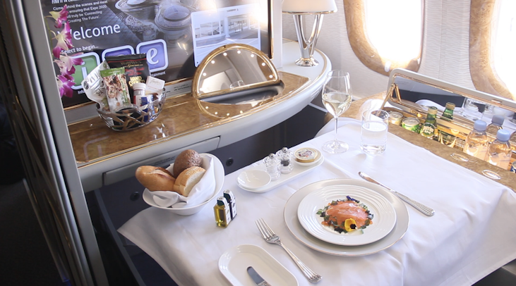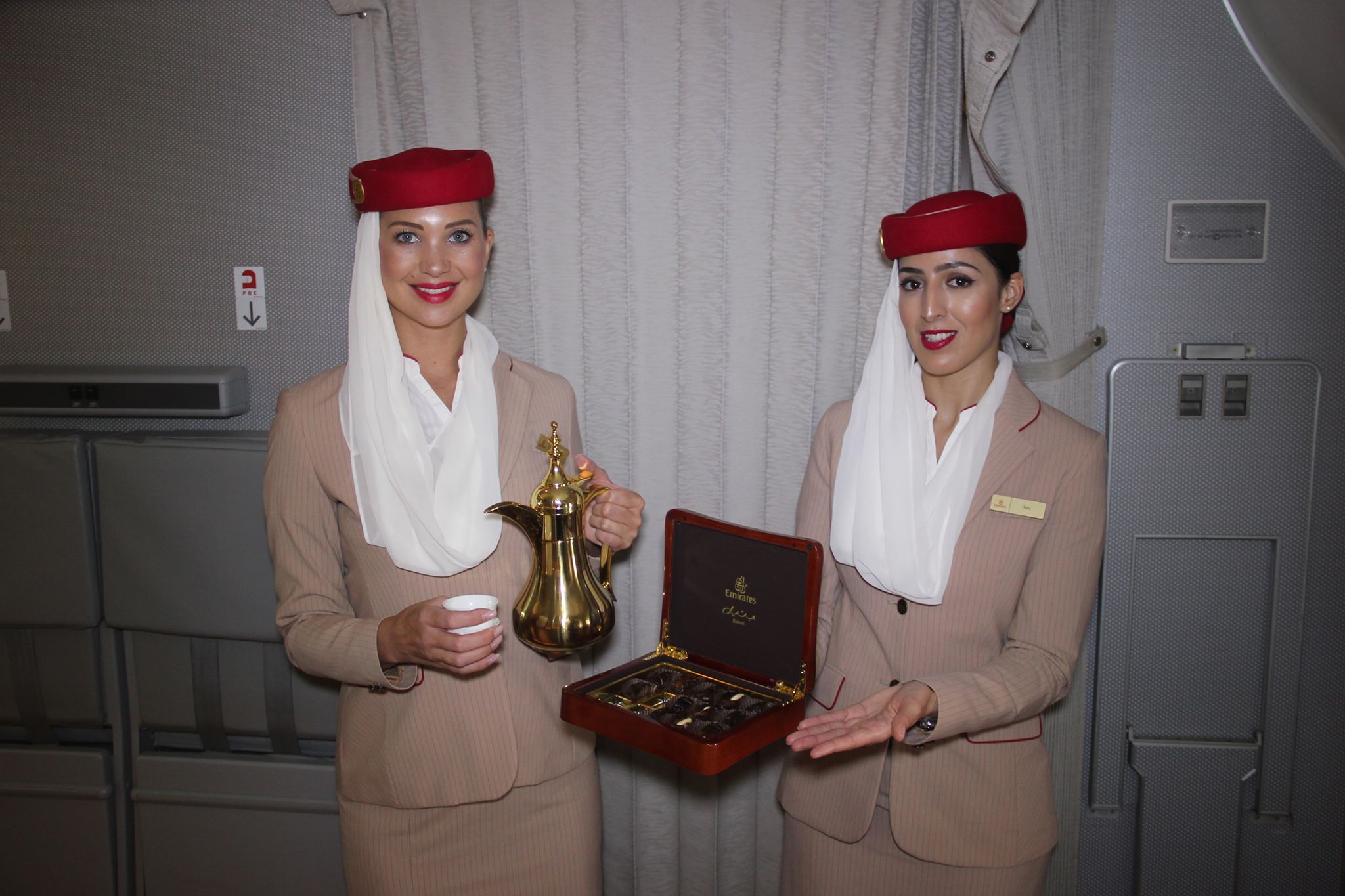 وينعم المسافرون على رحلات طيران الإمارات بتجربة فريدة مع خدمة الطاقم المتعدد الجنسيات، الذي يضم أكثر من 400 مضيفة ومضيف مغربي، كما يستمتعون بالأطباق المحلية الشهيرة مثل الحريرة ومجموعة من المقبلات المغربية مع تقديم طاجين السمك المغربي كطبق رئيس في درجة الأعمال والسمك المتبل كطبق رئيس في الدرجة السياحية.