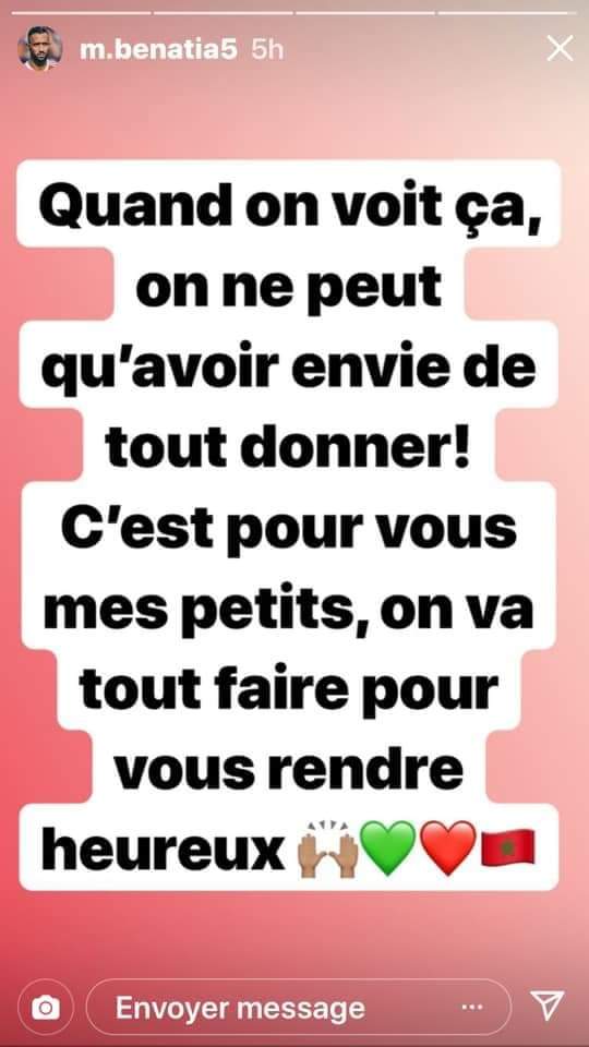 وقال "بنعطية"، في رسالته التي وجهها عبر حسابه الشخصي بوسائط التواصل الإجتماعي:"عندما نرى هذا لا يمكن إلا أن نعطي كل ما جهدنا".