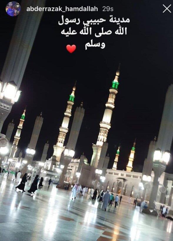 اختار الدولي المغربي عبد الرزاق حمد الله ، زيارة المدينة المنورة، خلال إجازته القصيرة عقب مباراة دوري أبطال آسيا التي قاد خلالها فريقه للتأهل إلى دور الربع .
