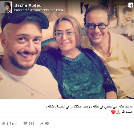 وكتب البشير عبدو في تدوينة مرافقة للصورة على حسابه بالفايسبوك "مرحبا بيك ابني حبيبي في بيتك ، وسط عائلتك و في أحضان بلدك ،..الحمد لله".