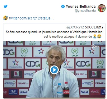 فقد قام بلهندة بنشر فيديو على حسابه بتويتر مقتطف من الندوة الصحافية التي عقدها وحيد خليلوزيتش عقب انتهاء مباراة النيجر، وتحديدا اللحظة التي طرح فيها أحد الصحافيين سؤالا يصف فيه حمد الله بأحد أفضل الهدافين العالميين.