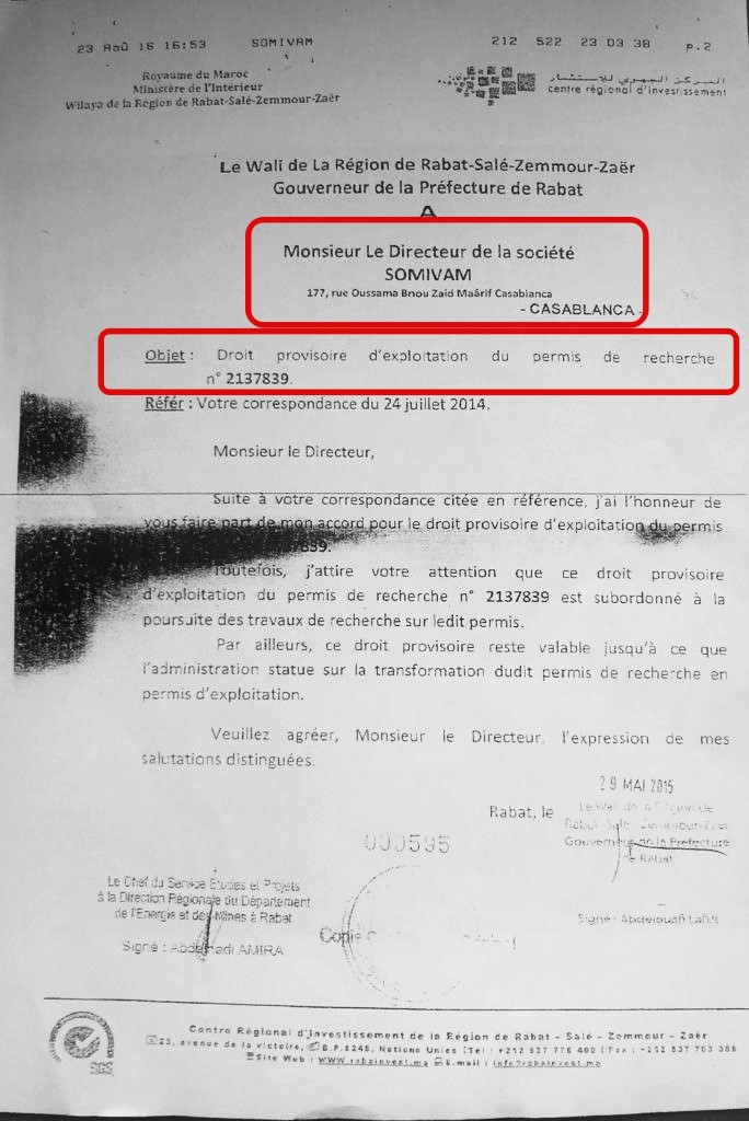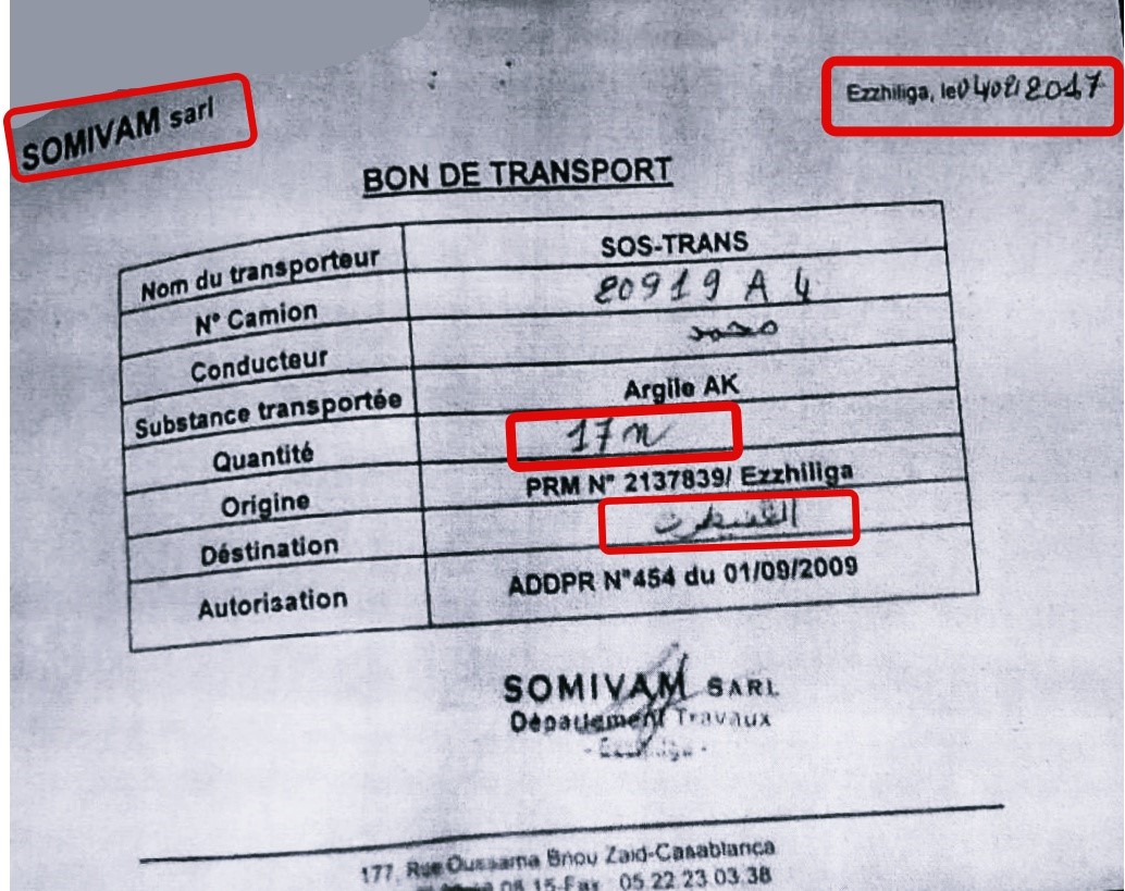 مصادر مطلعة قالت أن الشركة سالفة الذكر، والتي لا تتوفر إلا على رخصة للتنقيب عن المعادن، شرعت في استخراج "الطين" من المقلع منذ عشر سنوات، وبيعه لشركة بناء وأشغال عمومية، وهو الأمر الذي كشفت حقيقته صورة وصل توصل به موقع "أخبارنا" يؤكد أن الشركة المذكورة مازالت تبيع مواد البناء سنة بعد على انتهاء الرخصة، في تحايل واضح على القانون، رغم أنها تقدمت 6 مرات متتالية بطلب للحصول على حق الاستغلال، باءت كلها بالفشل.