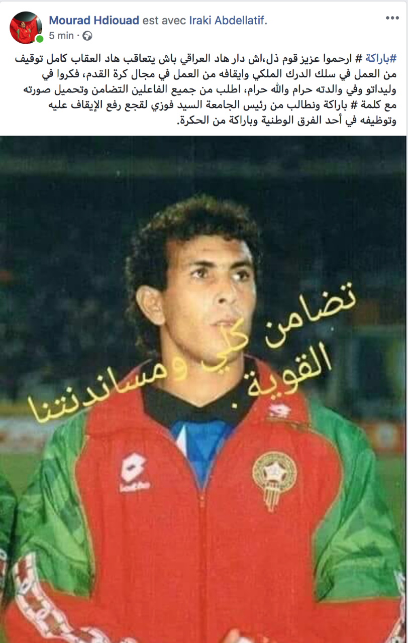 بكثير من الألم والحزن الشديد، تفاعل مغاربة الفيسبوك مع قضية "عبد اللطيف العراقي"، الحارس السابق للمنتخب الوطني المغربي وفريق شباب المحمدية، الذي تمت محاصرته تماما في قوت يومه، إثر فصله أول الأمر من سلك الدرك الملكي، ومنعه عقب ذلك من العمل كمدرب للحراس.