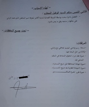 رضى و والدته يتساءلان هل ضاعت حقوق سيدة في عقار تملكه بشكل قانوني وتتوفر على وثائق رسمية تؤكد ادعاءاتها؟ هل تُسَوِّغُ وضعية "كاورية" لشخص ما الإعتداء على حقوق الغير؟ ويطالبان من رئاسة النيابة العامة والإدارة العامة للأمن الوطني السهر على تطبيق القانون وإرجاع حقوق المالكة إن كان لها حق طبعا خصوصا وأن المؤسسة المترامية تشتغل بشكل عادي؟