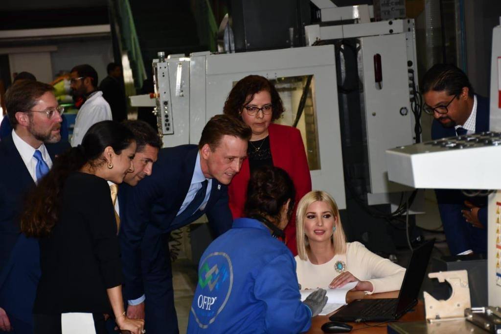 وخلال هذه الزيارة ، اطلعت مستشارة رئيس الولايات المتحدة الامريكية على جملة من المشاريع الكبرى التي انخرط فيها المغرب في مجال الطيران حيث قامت بجولة لمختلف ورشات معهد "إسمالا" التابع للمكتب التكوين المهني وانعاش الشغل.