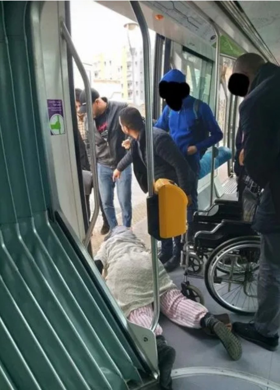 تناقل رواد الفيسبوك، صورا صادمة جدا، توثق لعملية سحل وجر سيدة من ذوات الاحتياجات الخاصة، كانت على متن الترامواي (الخط الثاني) على مستوى حي بطانة بسلا.