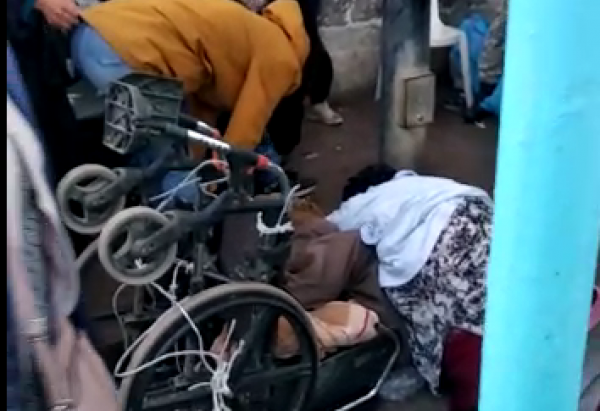 وظهرت الفتاة في الفيديو وهي تحتج على سوء معاملة الرجل المقعد الذي كان ساقطا على الأرض، بينما كانت سيدة أخرى تقوم بحمايته.