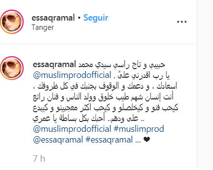 وكتبت صقر "حبيبي و تاج راسي سيدي محمد، يا رب اقدرني علىً اسعادك، ودعمك والوقوف بجنبك في كل ظروفك، أنت إنسان شهم طيب خلوق وولد الناس وفنان رائع كيحب فنو وكيخلصلو وكيحب اكثر معجبينو وكيبدع على ودهم..أحبك بكل بساطة يا عمري ..".