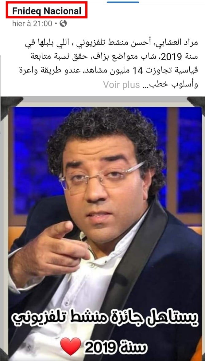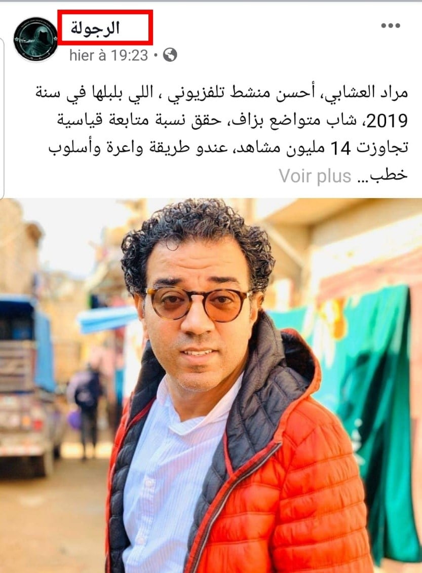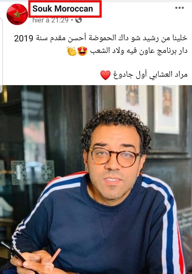 تزامنا مع حلول السنة الميلادية الجديدة "2020"، اختارت صفحات فيسبوكية شهيرة بالمغرب، الفنان والمنشط التلفزيوني "مراد العشابي"، كأحسن منشط تلفزيوني في المغرب لسنة 2019.