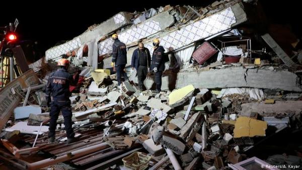 وبثت محطة (تي.أر.تي) الحكومية مشاهد لعشرات العمال في ضوء الفجر يستخدمون معاول للحفر في منزل انهار جزئيا. وتحطمت النوافذ وانهارت شرفات من أربعة طوابق على الأقل. وعمل أفراد فرق الإنقاذ طوال الليل بأيديهم وبحفارات لرفع الأحجار والإسمنت من بين الأنقاض في المدينة التي هبطت فيها درجات الحرارة خلال الليل إلى ثماني درجات مئوية تحت الصفر.