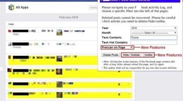 وهنا ينصح الخبراء باستثمار بعض الوقت عند استعمال شبكة فيس بوك يومياً نظراً لأنه لا توجد أدوات تساعد المستخدم في تنظيف شبكة فيس بوك، باستثناء الأداة الإضافية Social Book Post Manager لمتصفح غوغل كروم، والتي توفر للمستخدم إمكانية تعديل الكثير من المنشورات في سجل النشاط دفعة واحدة.