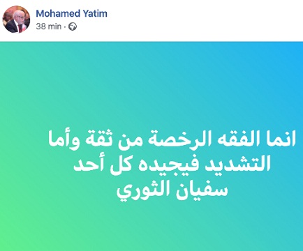 التدوينة أشعلت مواقع التواصل الاجتماعي ومعها "البيجيدي"، وأول الردود المخالفة و" الغاضبة" في مضمونها لقيادة الحزب الإسلامي، تدوينة لعضو الأمانة العامة والوزير السابق محمد يتيم، والذي نقل عن سفيان الثوري قوله: "إنما الفقه الرخصة من ثقة وأما التشديد فيجيده كل أحد...سفيان الثوري"."