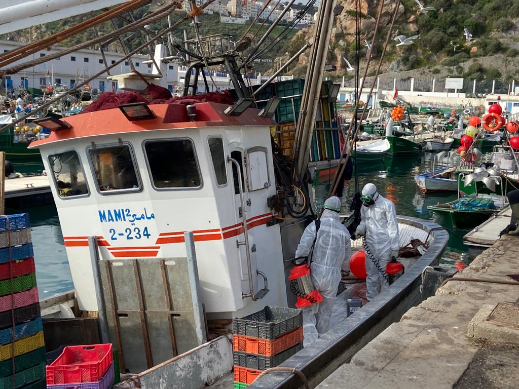 وفي نفس السياق تم تعقيم جميع المراكب الوافدة على الميناء كإجراء احترازي.