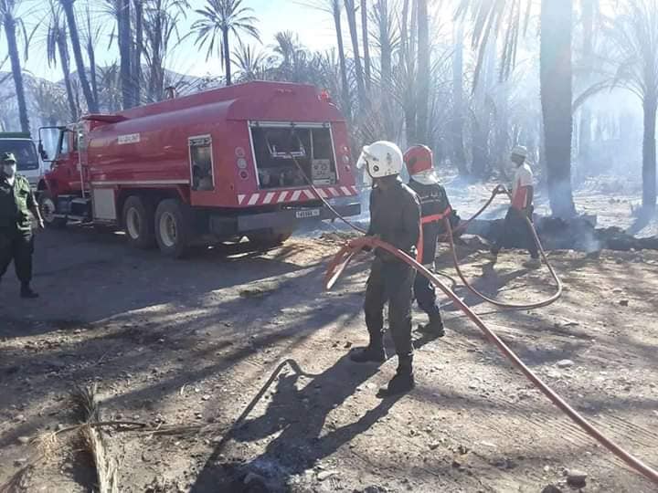 مصادر محلية أكدت أن عاصفة رملية شهدتها المنطقة، كان لها دور كبير في انتشار النيران بشكل كبير بين نخيل الواحة، قبل أن تشير إلى أن يقظة المسؤولين بالإقليم، من رجال الوقاية المدنية والسلطات المحلية، جنبت المنطقة كارثة حقيقية، كانت ستكبدها خسائر في الأرواح، حيث مكن التدخل الاستباقي للرجال الوقاية من التحكم في الحريق الضخم ووقف زحفه نحو تجمع سكاني يوجد على بعد أمتار معدودة من موقع الحريق.