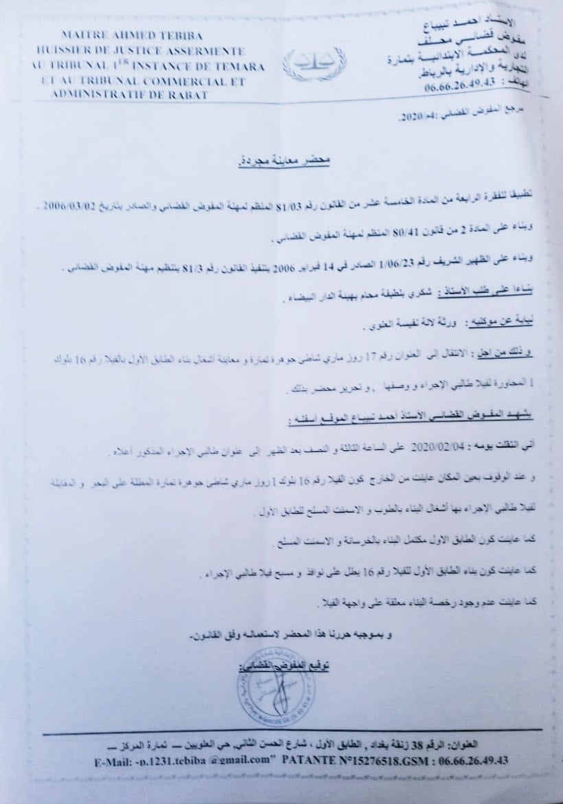 مناسبة هذا التقديم، حالة كل من السيدة "نعيمة كوريم"، وجارتها السيدة "مريم بوعداني"، اللتين سلكتا كل السبل القانونية في مواجهة جار لهما قام في خرق سافر لقانون التعمير، ببناء طابق علوي وتوسعة "فيلته"، رغم أنه لا يتوفر إلا على رخصة إصلاح فقط، حيث طرقتا كل الأبواب من أجل إيقاف هذه الأشغال غير القانونية، بيد أن المشتكى به لم يكترث لشكاياتهما، بل وتمادى في مواصلة أشغاله مستغلا حالة الطوارئ الصحية، وقد وقفنا في موقع "أخبارنا" على سير هذه الأشغال بالصوت والصورة (الفيديو).