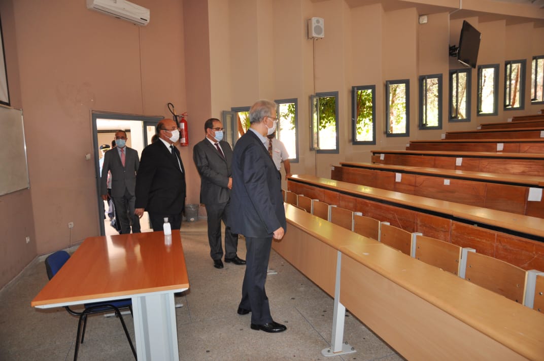 وهكذا زار والي الجهة والوفد المرافق له كلا من القاعة المغطاة سيدي يوسف بن علي وعدد من المدرجات والقاعات الكبرى المعتمدة بالمدرسة الوطنية للتجارة والتسيير بمراكش، كفضاءات جديدة تضمن كافة الشروط التنظيمية والصحية والوقائية، كما زار مركز الامتحان بالثانوية التأهيلية سحنون، حيث اطلع على الترتيبات التنظيمية والتدابير الاحترازية والوقائية الجديدة، التي شهدها تنظيم هذه الامتحانات، في احترام تام لكافة الإجراءات الواردة في دفتر المساطر وفي البروتوكول الصحي الخاص بتنظيم امتحانات البكالوريا لهذه السنة، من حيث التشوير والفصل بين ممرات الدخول والخروج واحترام مسافة التباعد الاجتماعي خارج وداخل القاعات وتوفير كافة المستلزمات الضرورية للنظافة والوقاية والسلامة الصحية من كمامات وأقنعة واقية وترتيبات احتياطية لتعقيم الأحذية وقياس الحرارة المترشحين والأطر.