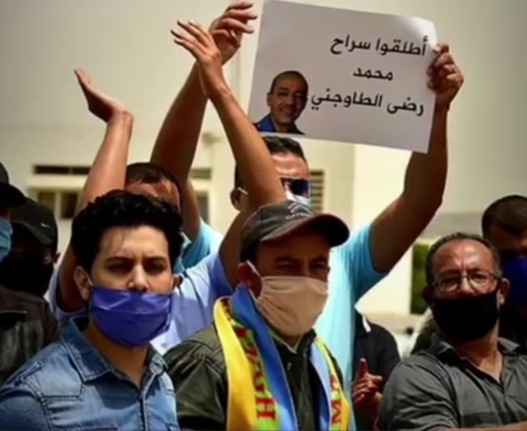 نظم العشرات من ساكنة أكادير، أمس الخميس، وقفة احتجاجية تضامنية مع الناشط رضى الطاوجني، والمتابع بتهم تتعلق بتزوير صفائح مركبات، واستخدامها، وحيازة بضائع بدون سند قانوني، حيث رُفعت شعارات طالبت بإطلاق سراح رضى، ومتابعة من وصفوا ب"المفسدين".
