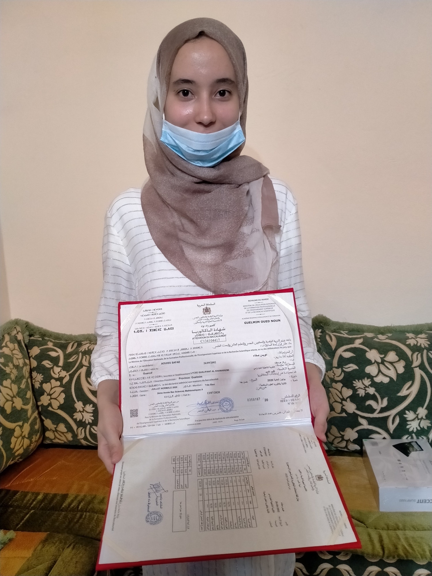 ب 18,65 كأعلى معدل على مستوى جهة كلميم واد نون في الدورة العادية لامتحانات البكالوريا برسم سنة 2020، بدأت التلميذة صفاء عويس في فك أولى شيفرات المستقبل.