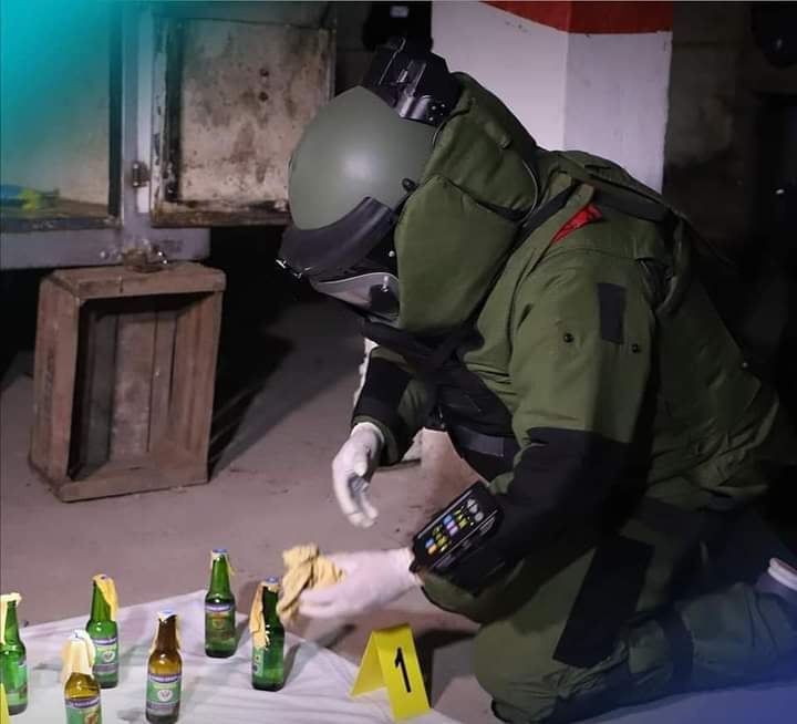 وأضاف المصدر ذاته أن إجراءات المسح والتفتيش داخل عربة التبريد المملوكة للمشتبه فيه مكنت من العثور وحجز ست قارورات زجاجية، تحتوي على مواد سائلة قابلة للانفجار وموصولة بقطع ثوب، ومدية كبيرة، علاوة على حاويتين من البلاستيك سعة إحداهما 20 لترا والثانية خمسة لترات، تضمان بقايا وآثار مواد كيميائية مشكوك فيها، سيتم إخضاعها للخبرات التقنية الضرورية من طرف معهد العلوم والأدلة الجنائية.