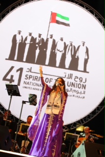 فرحتي من خلال هذه المشاركة المتواضعة لهذا البلد، الذي إحتضنني كما إحتضن الكثيرين من الفنانين"، وأضافت: "أنا اعتبر نفسي بنت هذه البلاد ومحسوبة عليهم، فهذا أقل شيء نعمله ونقوم به تجاه هذا الشعب الطيب، فالإمارات تتميز بتنظيم هذه الاحتفالات في كل أنحاء الدولة".