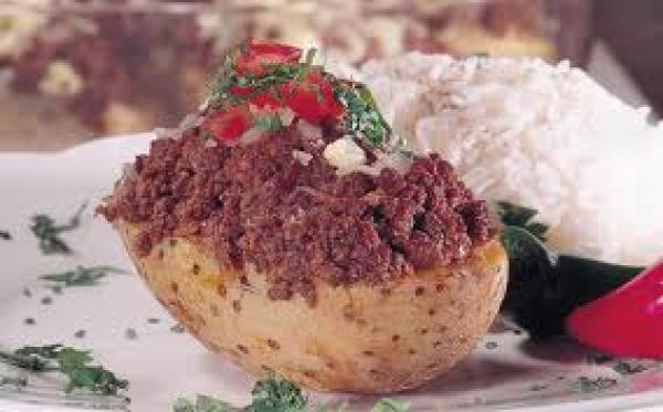 - تحشى رؤوس البطاطا المفرغة بحشوة اللحم المعدة.