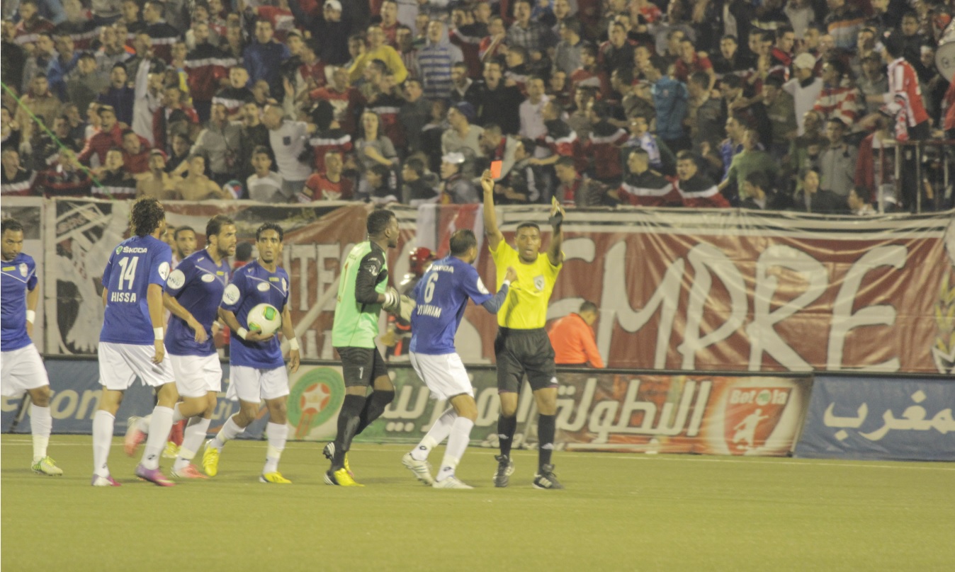 و شهدت المباراة طرد المدافع الاكاديري عز الدين حيسا في الدقيقة 58 بعد انذارين متتاليين اثر تلفظه بكلمات خارجة تجاه الحكم.
