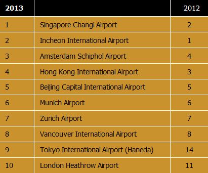 حصل مطار شانغي – Changi Airport – في سنغافورة على جائزة أفضل مطار لعام 2013 لما يوفره من خدمات وتجهيزات تصب في خدمة المسافر حيث يبلغ عدد المسافرين 135 ألف راكب يومياً.