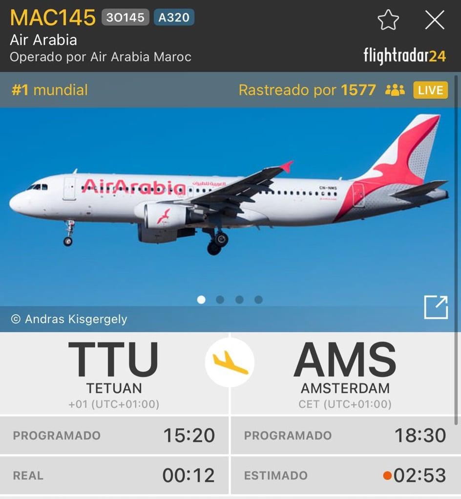 وكان من المقرر أن تقلع الرحلة يوم الجمعة على الساعة 15:20 بعد الزوال، لتصل إلى أمستردام عند 18:30 مساء، لكن الطائرة لم تغادر مطار تطوان إلا بعد منتصف الليل بـ12 دقيقة، بعد تأخير استمر لنحو 9 ساعات.