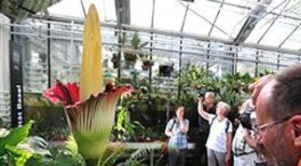 يتدفق الآلاف في سويسرا على حديقة النباتات بمدينة بازل شمالي البلاد لرؤية برعم الزهرة العملاقة النتنة "زهرة الجيفة".وتعرف الزهرة بهذا الاسم لأنها تبعث رائحة كرائحة اللحم المتعفن. وهذه الأولى التي