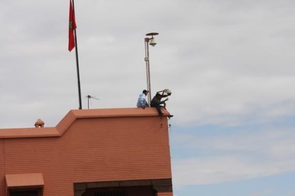تقني شوهد صباح اليوم، فوق بناية الشرطة السياحية، وهو يقوم بإصلاح الكاميرات من أجل إعادة تشغيلها، وهي الكاميرات التي كانت سببا في اعتقال العديد من المجرمين، عندا كانت البناية مقرا للشركة القضائية، التي انتقلت إلى المبنى الجديد لولاية أمن مراكش، وفسحت المجال لمصلحة الشركة السياحية للعمل فيه، منذ شهور خلت.