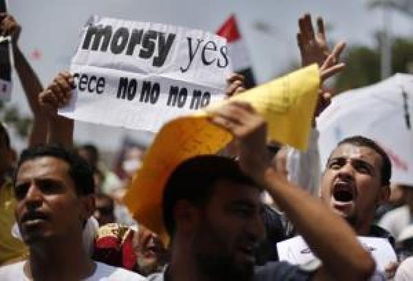 تجمع عشرات الالاف من انصار الرئيس المصري المعزول محمد مرسي في الجمعة الاول من رمضان امام احد مساجد القاهرة مطالبين بعودة رئيسهم الذي عزله الجيش، وذلك في اجواء من التوتر السياسي الشديد.